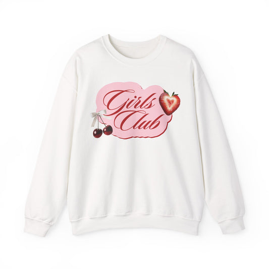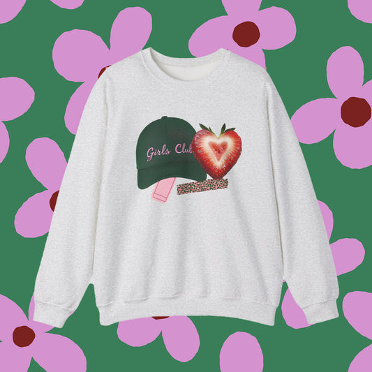 Girls Club Graphic Sweatshirt - Heart Strawberry & Cap Design
