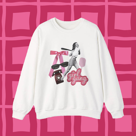 Girl Gang Crewneck Sweatshirt – Retro Pink Collage Graphic